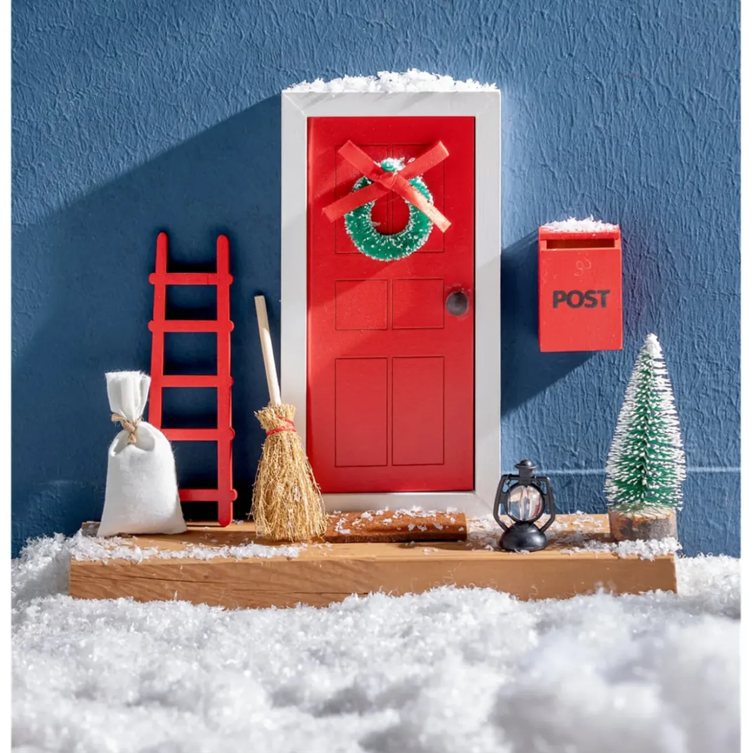 - Wichteltur-Set: Tur (9X18Cm) / Kranz / Briefkasten / Fusmatte / Besen / Leiter / Laterne / Tanne / Sackchen Und Klebepunkte Zum Befestigen