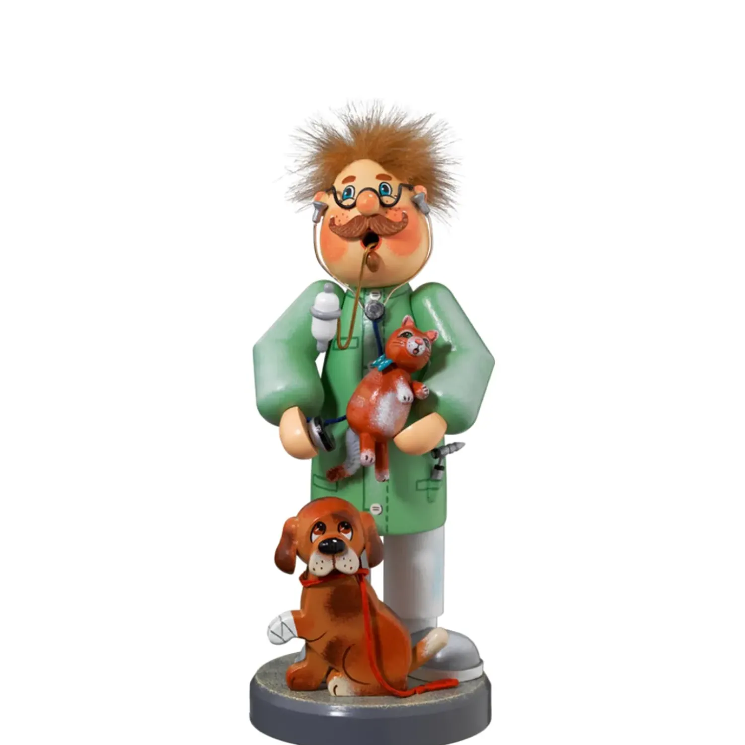 Unser Sympathischer Tierarzt Hat Ein Groses Herz Fur Alle Kranken Tiere. Gekonnt Tragt Er Eine Katze Auf Dem Arm Um Diese Mit Seinem Stethoskop Abzuhoren. Die Verstauchte Pfote Von Nachbars Lumpi Hat Er Auch Schon Eingebunden Und Dieser Wartet Nun Auf Sein Leckerli. Mit Freundlichem Lacheln Und Viel Geduld Leistet Er Seinen Patienten Gerne Gesellschaft Und Verstromt Aus Seiner Pfeife Einen Angenehmen Raucherduft. Der Knoddl-Tierarzt Ist Aber Auch Bestens Als Frohliche Dekoration Fur Eine Praxis Oder Als Geschenk Zum Bestandenen Examen Geeignet.