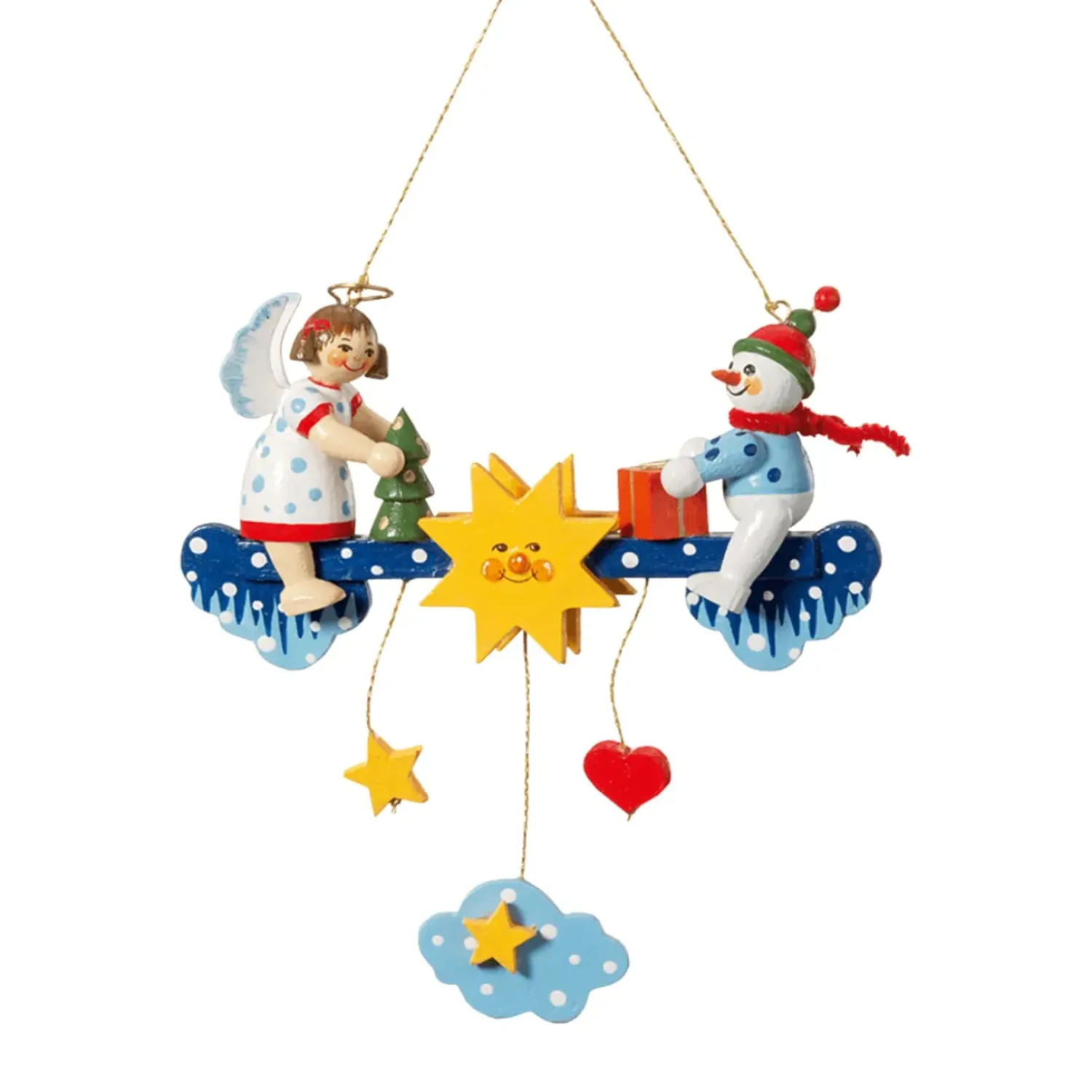 Schneemann Und Engel Machen Vor Wie Es Geht. Sie Sitzen Auf Der Blauen Himmelsschaukel, Die Ein Groser Gelber Stern Ziert, Und Schaukeln Frohlich Hin Und Her. Unter Der Schaukel Hangt Eine Kleine Schneewolke, Sterne Und Ein Herz. Das Engelchen Hat Einen Heiligenschein Und Weise Flugelchen. In Seinen Handen Halt Es Einen Kleinen Geschmuckten Christbaum. Der Schneemann Hat Sich Mit Pullover, Schal Und Mutze Herausgeputzt Und Halt Ein Kleines Geschenk In Seinen Handen. Was Fur Ein Himmlischer Spas!