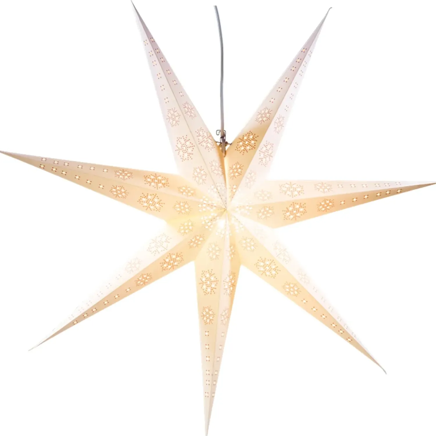 Leuchtender Papierstern Perforiert, Zum Aufhangen.
