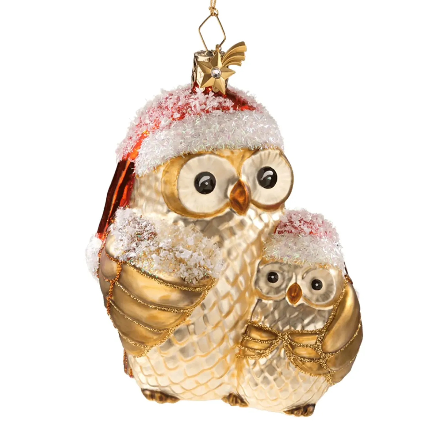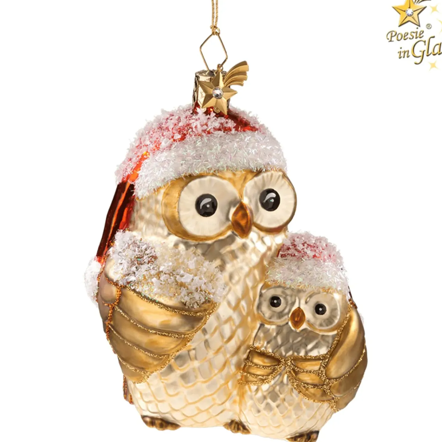 Weihnachten Ist Familienzeit. Menschen Kommen Zusammen, Geniesen Die Gesellschaft Und Das Besinnliche Fest. Dies Gilt Jedoch Nicht Nur Fur Menschen – Auch In Der Tierwelt Im Garten Herrscht Weihnachtstimmung Und Auf Das Zusammensein Wird Grosen Wert Gelegt. So Auch Auf Dem Hohen Ahornbaum, Wo Die Eulenmutter Und Ihr Kind Wohnen. Fur Das Grose Fest, Haben Sie Sich Bereits In Schale Geworfen, Tragen Eine Weihnachtsmannmutze Und Kuscheln Sich Auf Einem Ast Aneinander.