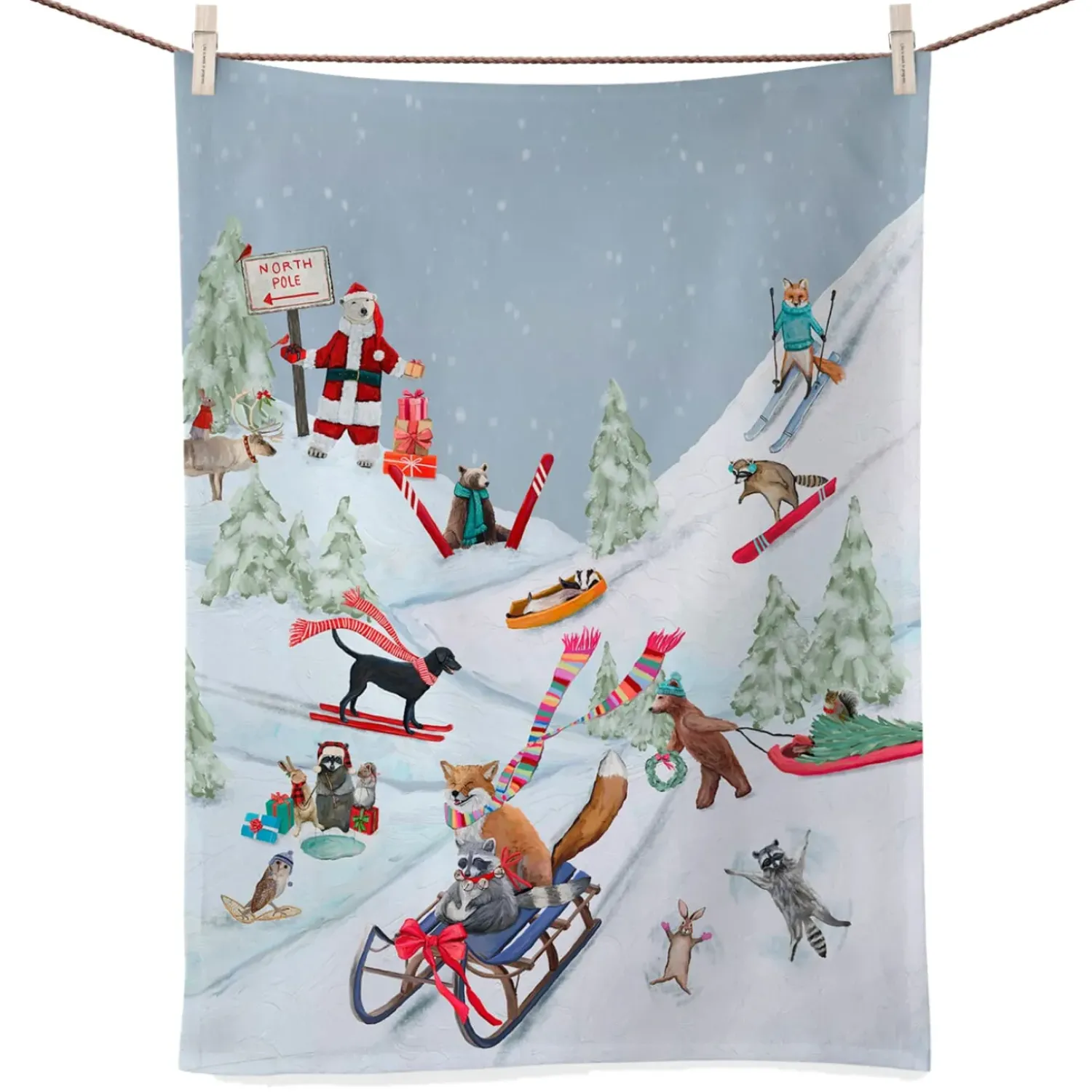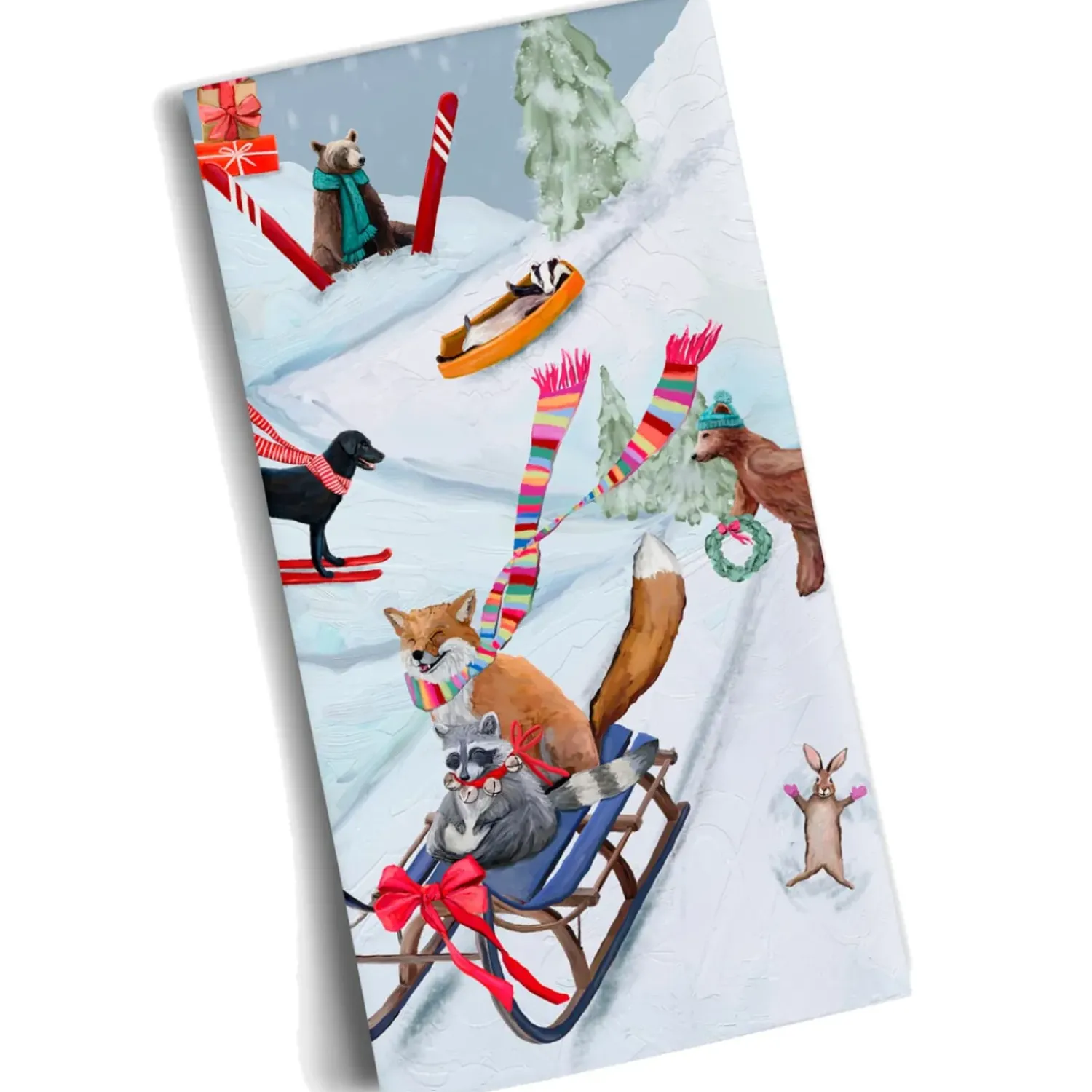 Geschirrtuch Schlittenfahrt Mit Tieren