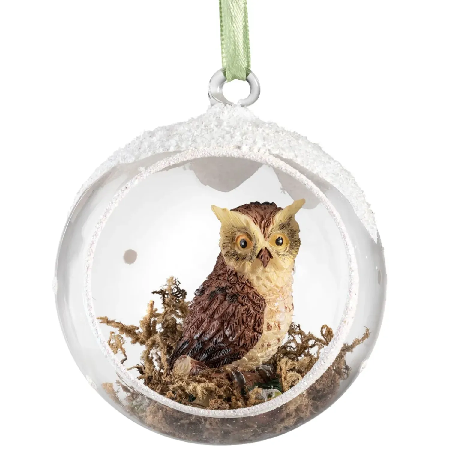 Aus Ihrer Verschneiten Glaskugel Heraus Beobachtet Die Eule Aufmerksam Ihre Umgebung.