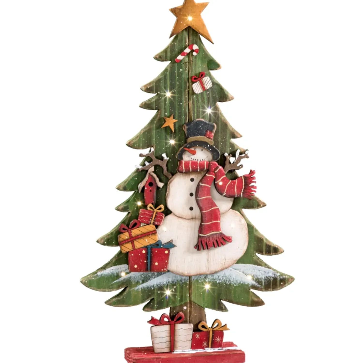 Weihnachtsbaum Mit Schneemann Im Landhausstil Mit Beleuchtung