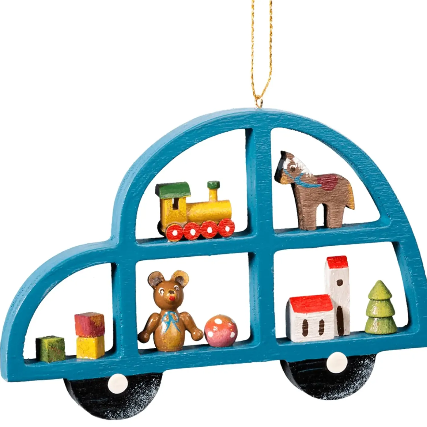 Umrahmt Von Der Blauen Karoserie Kommen Die Geladenen Spielsachen Wie Lok, Holzpferdchen, Ball, Teddy, Bauklotze Oder Spielehauschen Besonders Schon Zur Geltung Und Werden Unterm Weihnachtsbaum Fur Viel Freude Sorgen!