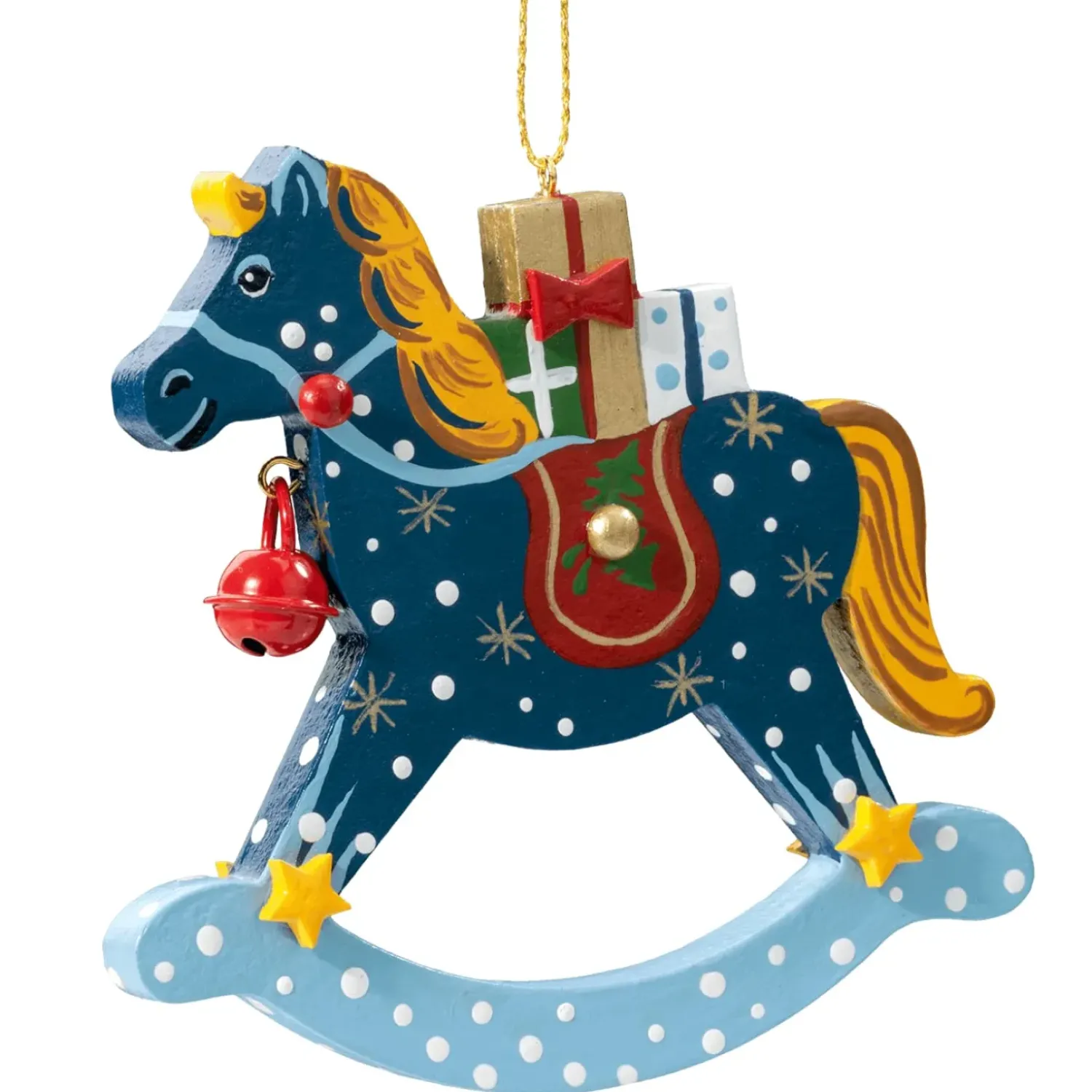 Das Bezaubernde Schaukelpferd Lasst Nicht Nur Kinderaugen Leuchten. Bepackt Mit Bunten Geschenkpackchen Und Wunderschon Verziert Mit Goldenen Sternen, Einer Roten Satteldecke Und Elegantem Zaumzeug, Sowie Einem Roten Metallglockchen, Lasst Das Schaukelpferd Weihnachtswunsche Wahr Werden.