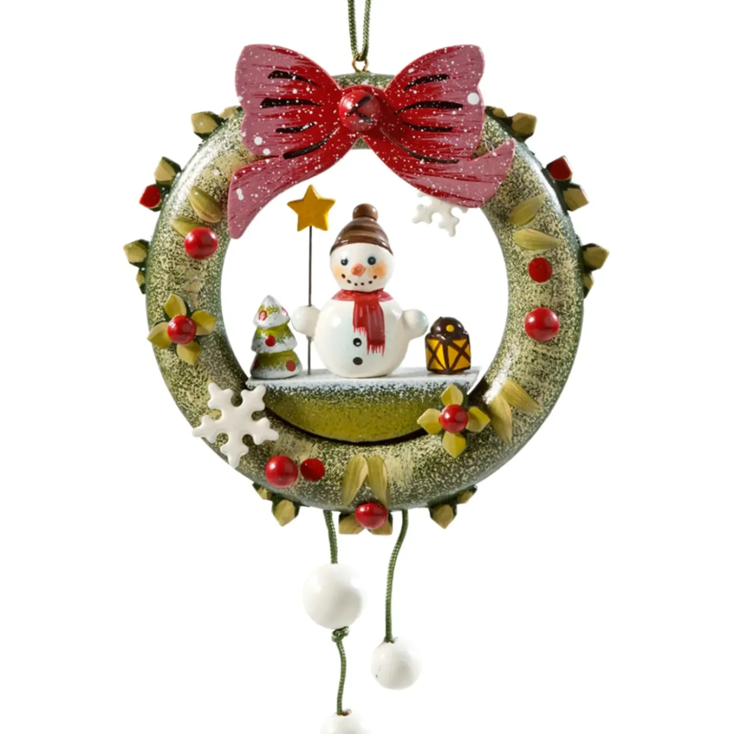 Der Schneemannkranz Ist Eine Schone Dekoration Fur Die Gesamte Winterzeit! Die Bezaubernde Kleine Winterszene Mit Dem Niedlichen Schneemann, Laterne Und Baumchen Ist Umrahmt Von Einem Grunen Kranz. Liebevoll Sind Blatter Und Beeren Der Stechpalme, Eine Schneeflocke, Eine Grose Rote Schleife Und Schneebeeren, Die Vom Kranz Baumeln, Darauf Geschmuckt.
