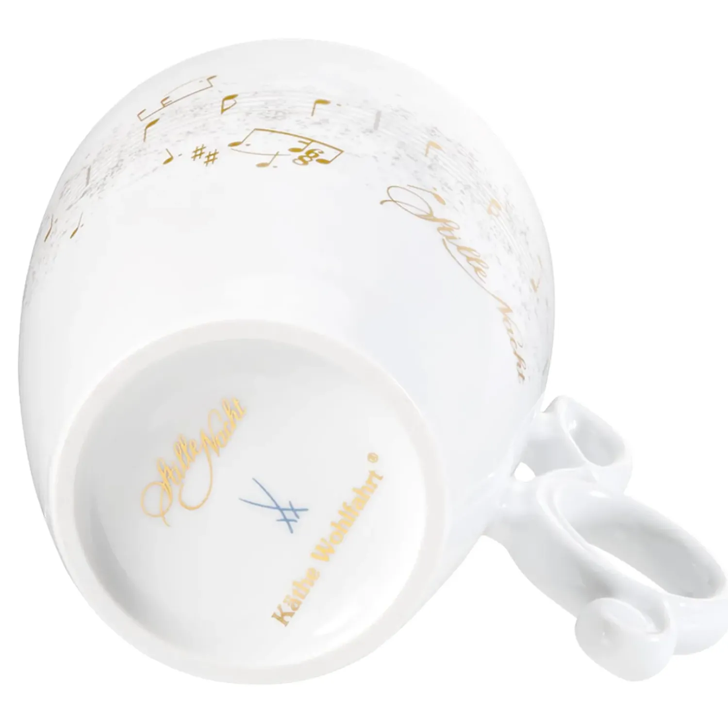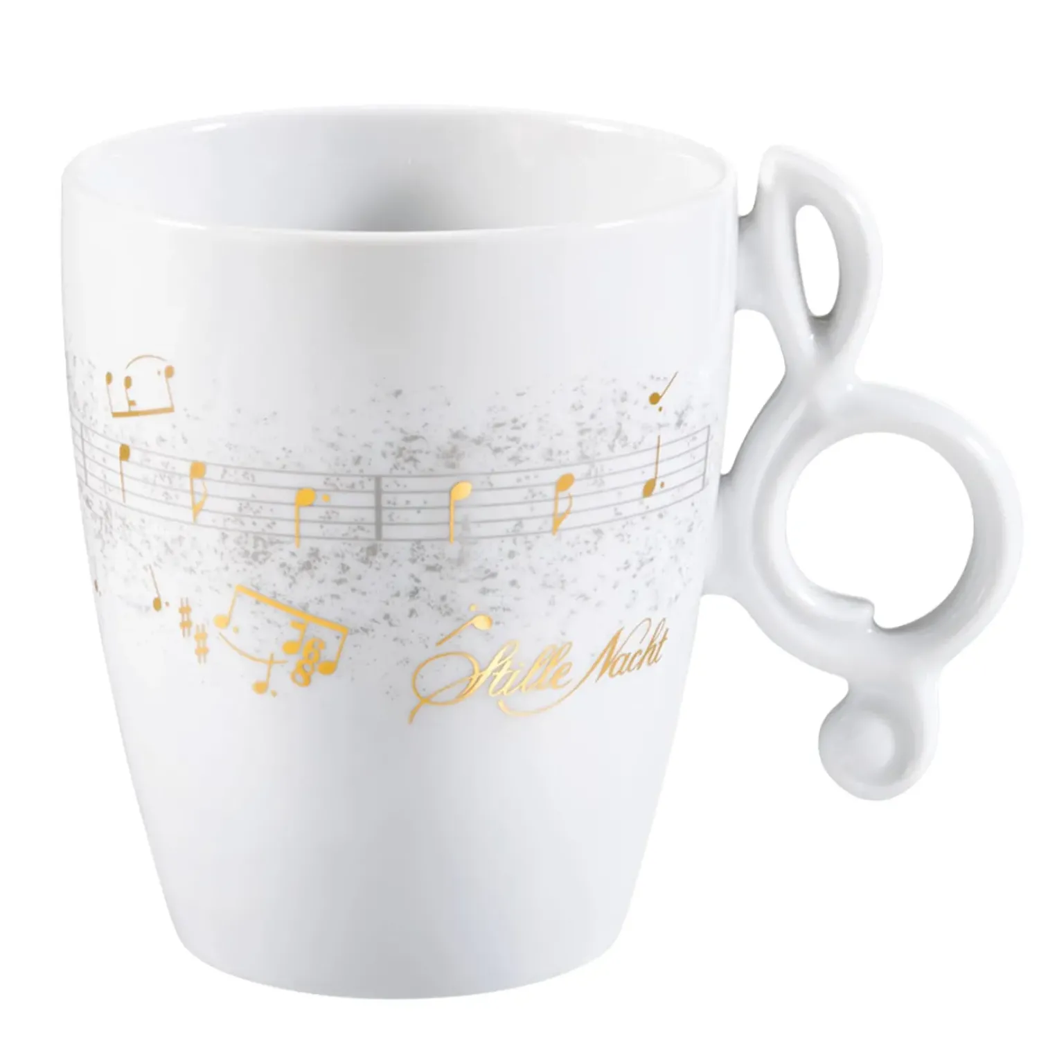 Die Aufwandig Gearbeitete Tasse, Die Sich In Form Und Dekor Meisterlich Dem Lied „Stille Nacht“ Annimmt Wurde Exklusiv Fur Kathe Wohlfahrt Gefertigt. Auffallig Ist Der Als Violinschlussel Gearbeitete Tassengriff.